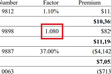 Example: An employer’s workers compensation policy has a base rate of $10,000 and it is multiplied by a 0.90% mod, the premium will now be $9,000 before the additional charges are added such as for terrorism, catastrophe, expense constant, etc.